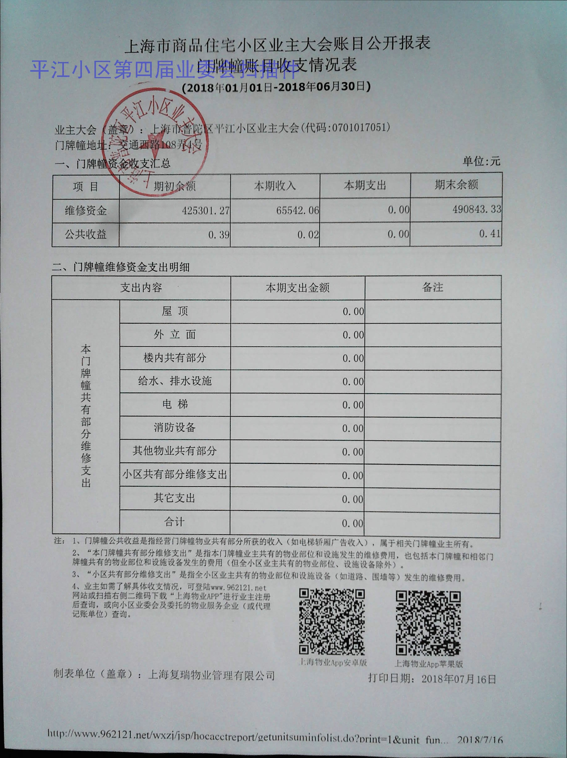关于平江小区业主大会账目公开报表(2018年01月01日-2018年06月30日)-11-3