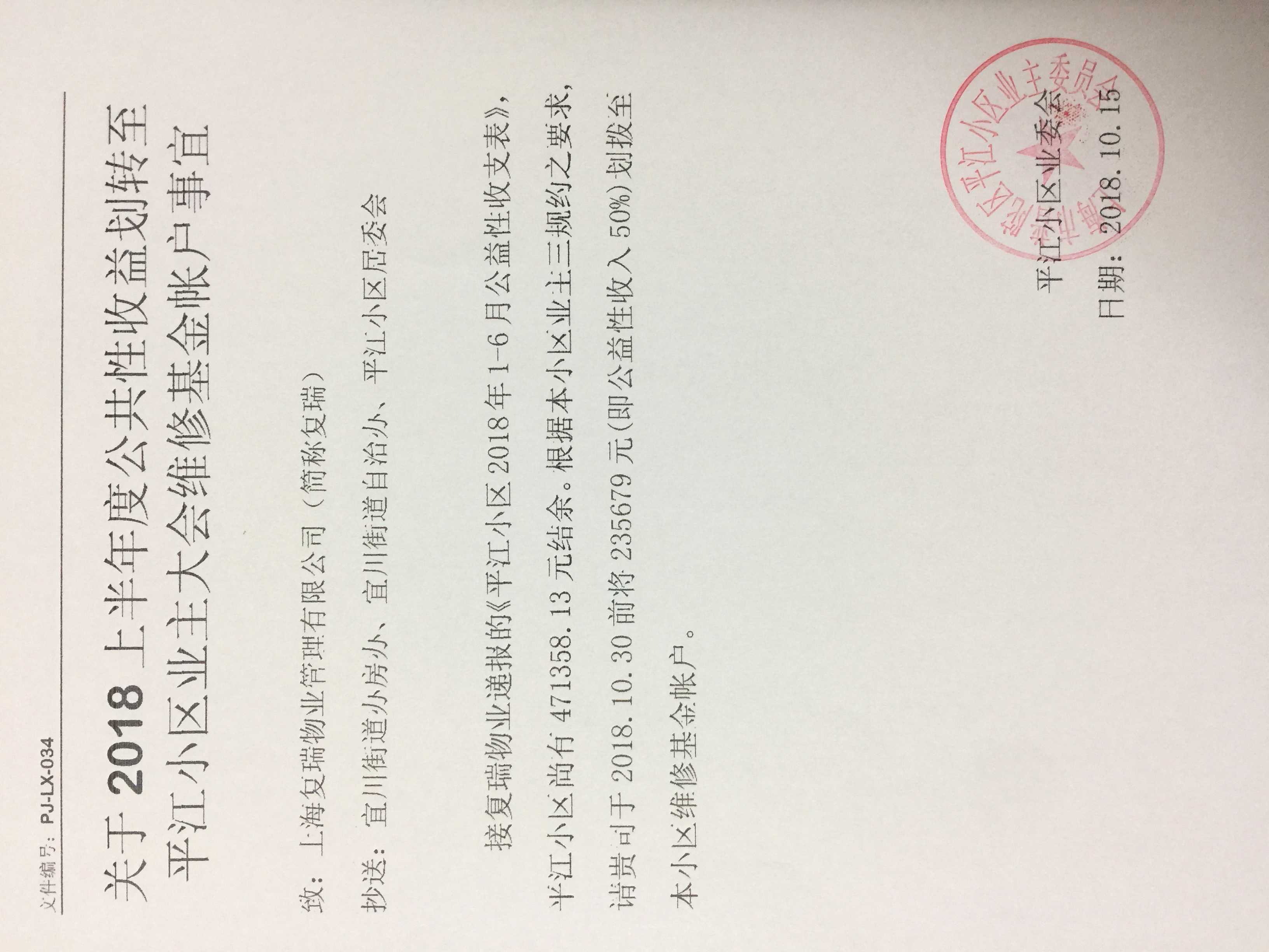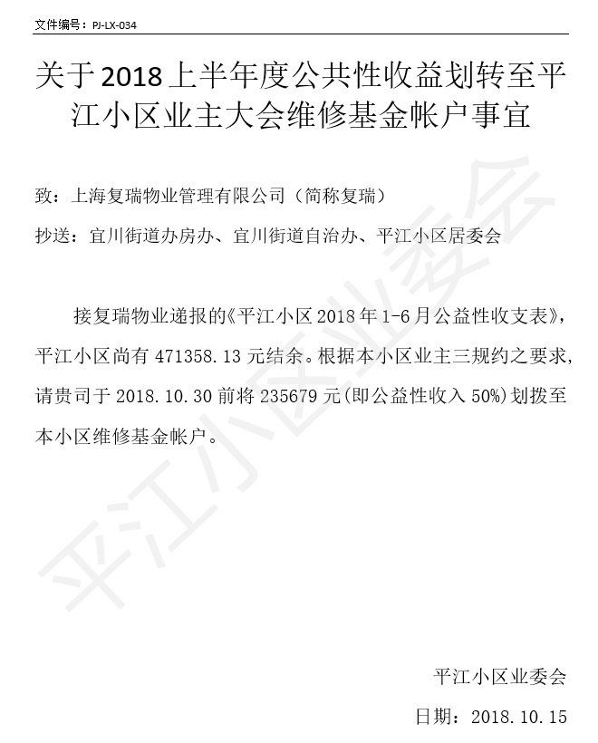 关于平江小区维修资金2018年上半年划拨公函【2018.10.15更新】
