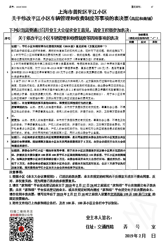 关于平江小区第四届2019年第二次业主大会投票②【高层和商铺(四项议题)】