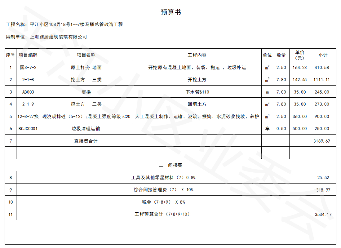 2.工程价格按照实际发生金额计算