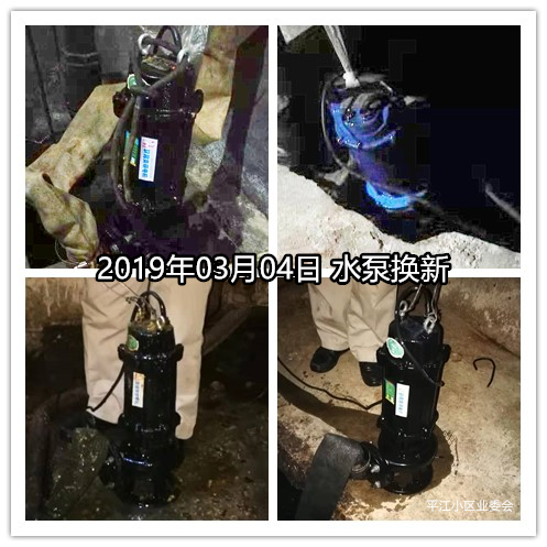 2019年3月4日(周一)华舟物业工程部通知业委会验收小区水泵换新安装,经业委会张浩明老师现场确认,所涉及四台新水泵已分别安装到108弄2号,108弄4号,以及188弄地下车库。