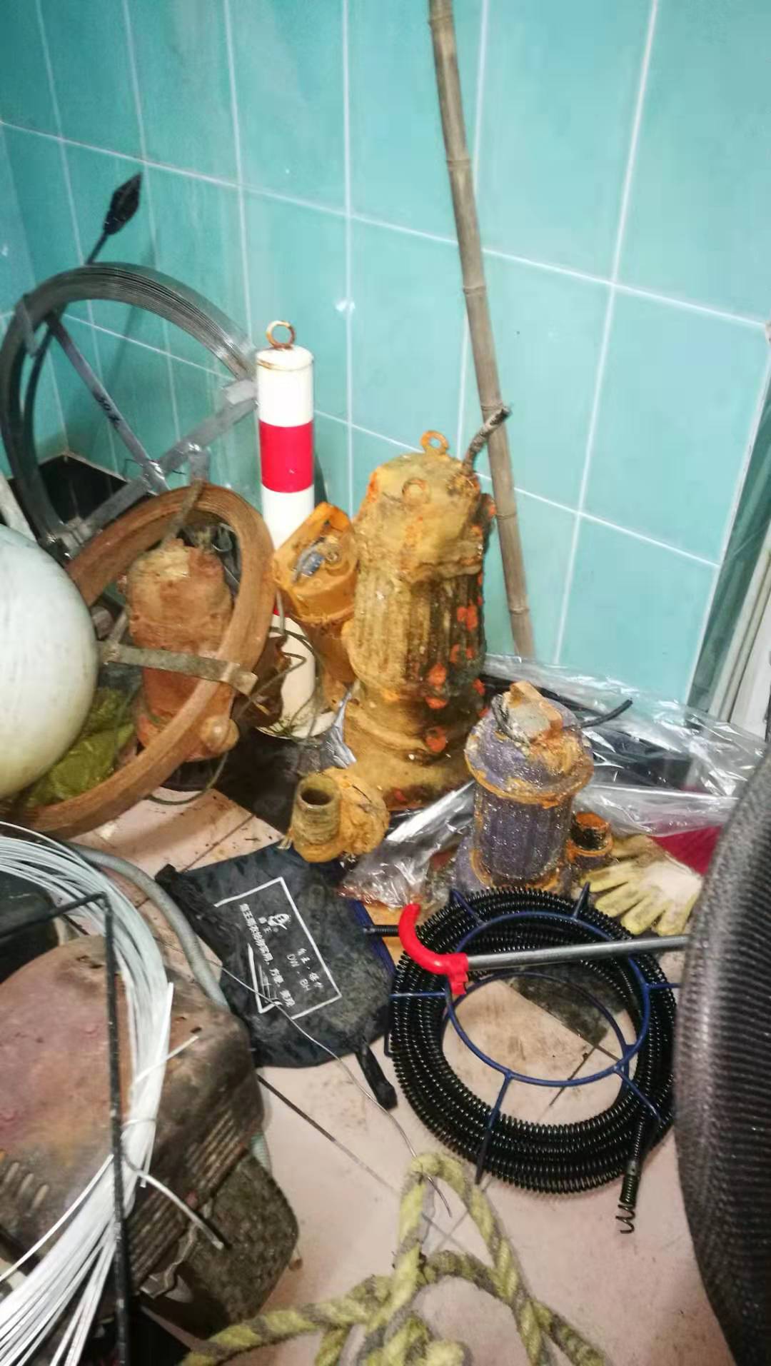 换下的四台坏水泵存放在维修队仓库。
