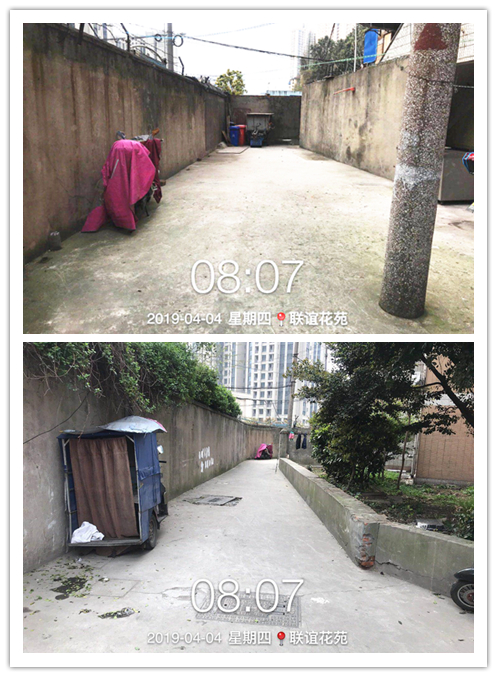2019年4月4日道路已清理干净,后期保安加强监督,物业加强管理。